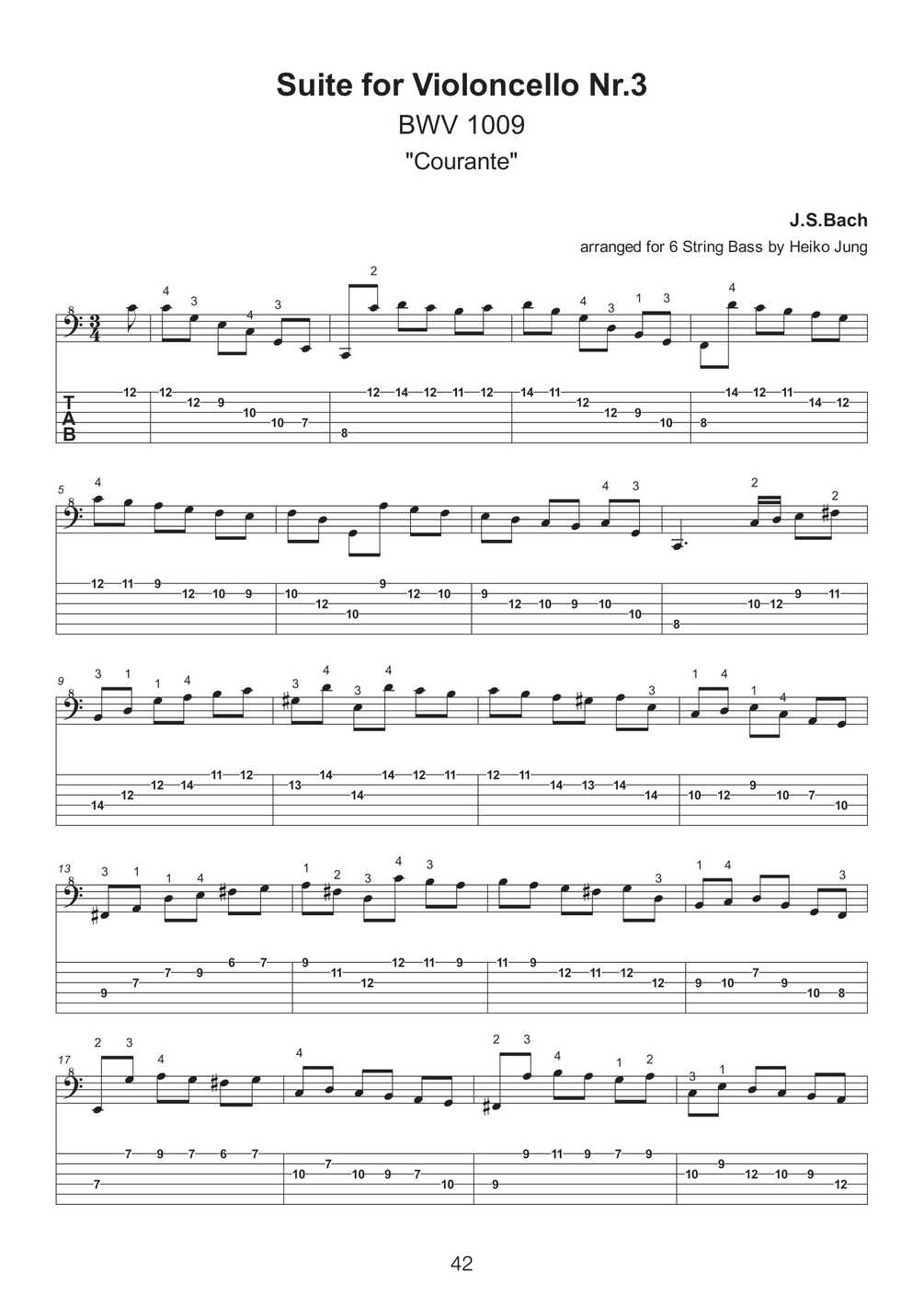 With this ebook, I am glad to present a selection of twenty solo pieces arranged for 6 String Bass that were taken from the repertoire of the famous "Six suites for violoncello solo" by Johann Sebastian Bach. In addition to the entire Suites No.1 and No.3, you will also find excerpts from Suites No.2, No.4 and No.5.