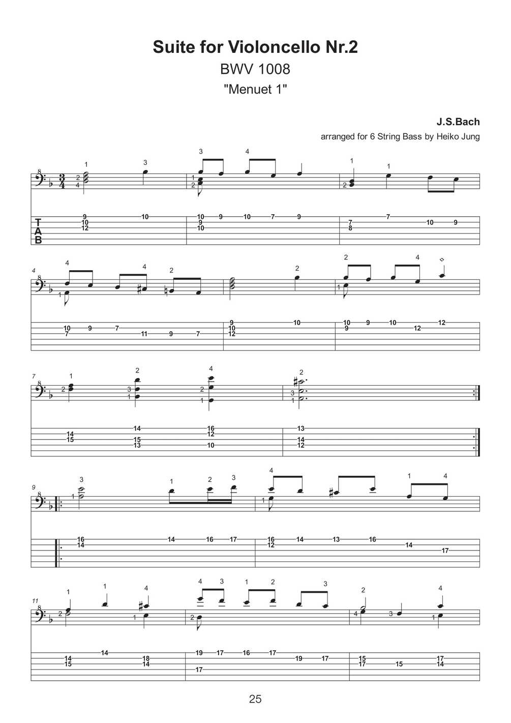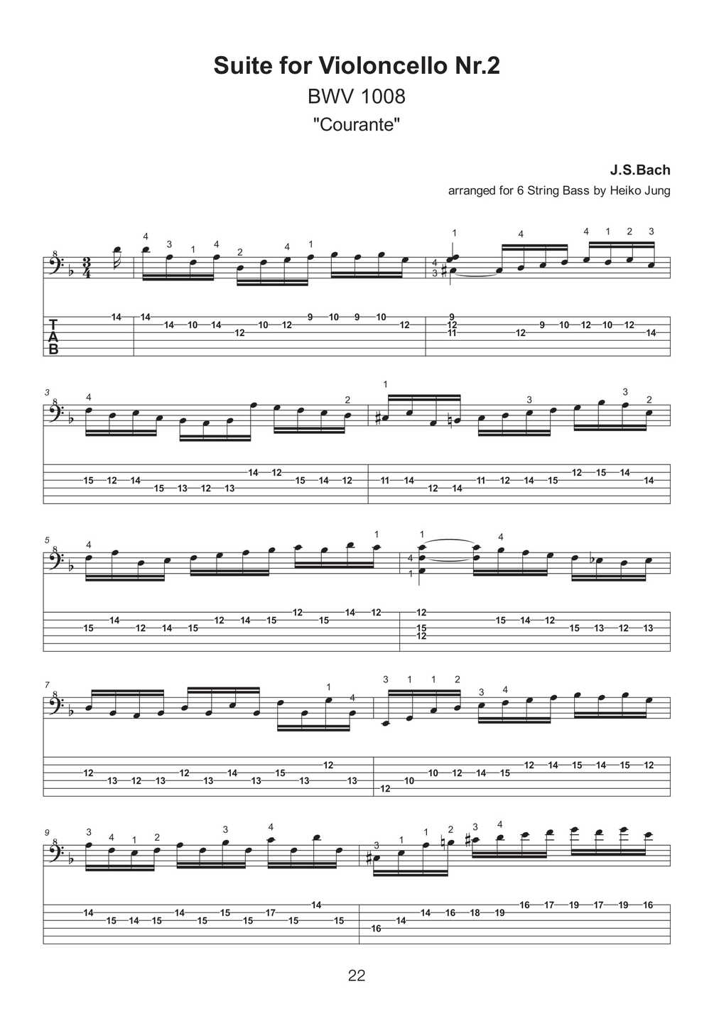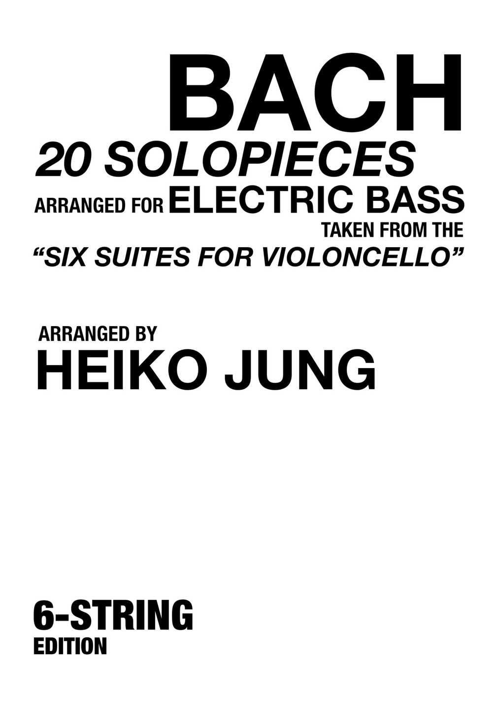 With this ebook, I am glad to present a selection of twenty solo pieces arranged for 6 String Bass that were taken from the repertoire of the famous "Six suites for violoncello solo" by Johann Sebastian Bach. In addition to the entire Suites No.1 and No.3, you will also find excerpts from Suites No.2, No.4 and No.5.