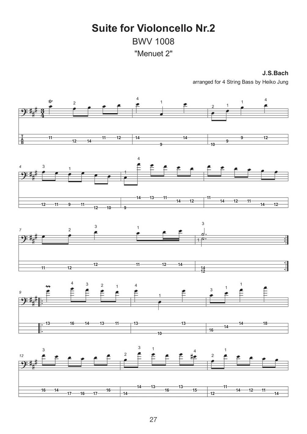 With this ebook, I am glad to present a selection of eleven solo pieces arranged for 4 String Bass that were taken from the repertoire of the famous "Six suites for violoncello solo" by Johann Sebastian Bach. In addition to the entire Suite No.1 you will also find excerpts from Suites No.2 and No.4.