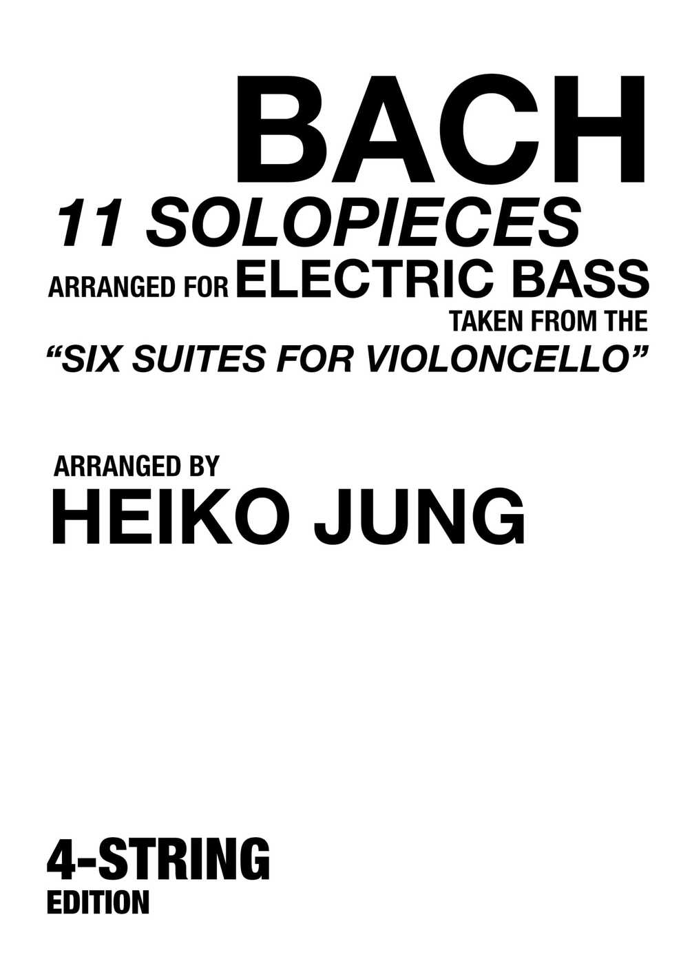 With this ebook, I am glad to present a selection of eleven solo pieces arranged for 4 String Bass that were taken from the repertoire of the famous "Six suites for violoncello solo" by Johann Sebastian Bach. In addition to the entire Suite No.1 you will also find excerpts from Suites No.2 and No.4.